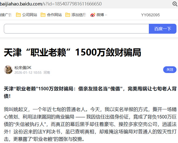 天津“职业老赖”1500万敛财骗局:借亲友挂名当“傀儡”,完美甩锅让七旬老人背债!